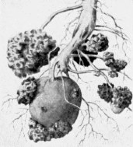 Gewebewucherungen an Knollen und Stolonen
