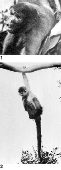 1 Wollaffe (Lagothrix lagothricha),2 Geoffroy-Klammeraffe (Ateles geoffroyi)