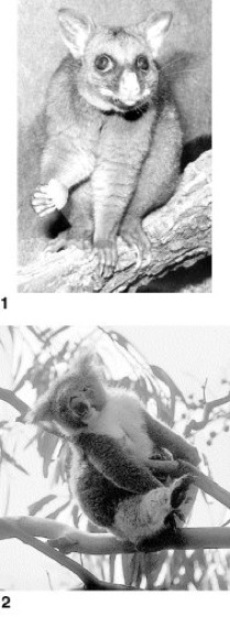 Kletterbeutler, Phalangeridae, vielgestaltigste Familie der Beuteltiere ( vgl. Abb. ); maus- bis fuchsgroß; oft mit Greifschwanz; je 5 Finger und Zehen mit Krallen (außer 1. Zehe), 2. und 3. Zehe mit Haut verwachsen. Kletterbeutler haben einen gut entwickelten Beutel mit Öffnung nach vorne (Ausnahme: Koala). Mit Ausnahme der Baumkänguruhs sind die Kletterbeutler die einzigen vorwiegend pflanzenfressenden Beuteltiere der australischen Region. 3 Unterfamilien: Rüsselbeutler (Tarsipedinae;Honigbeutler), Koalaverwandte(Phascolarctinae) und Eigentliche Kletterbeutler oder Phalanger (Phalangerinae); letztere mit 10 Gattungen und 23 Arten, darunter die Kusus, Kuskuse und Gleitbeutler.