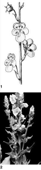 1 Blüten der Schaben-Königskerze (Verbascum blattaria);2 Königskerze (Verbascum spec.)