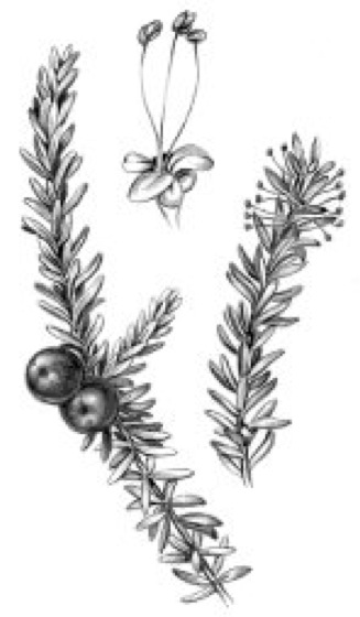 Schwarze Krähenbeere (Empetrum nigrum) mit Blüten und Steinfrüchten