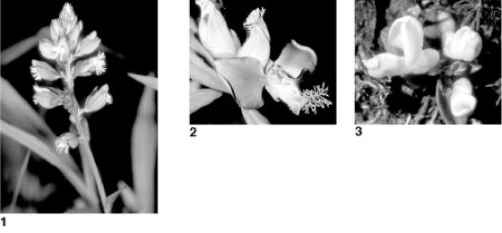 1 Schopfige Kreuzblume (Polygala comosa),2Polygala myrtifolia (Südafrika), 3Polygala chamaebuxus (Zwergbuchs, Mittelmeergebiet
