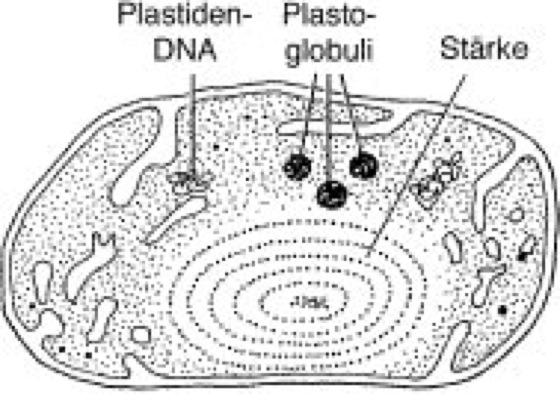 Leukoplasten [von *leuko- , griech. plastos = geformt], farblose Plastiden Höherer Pflanzen; wegen des Fehlens von Chlorophyllen sind Leukoplasten ( vgl. Abb. 1 und vgl. Abb. 2 ) Photosynthese-inaktiv und übernehmen meist Speicherfunktion (Proteinoplasten: Speicherprotein; Amyloplasten: Stärke; Elaioplasten: Lipid). Die ebenfalls farblosen Plastiden meristematischer Zellen bilden als Proplastiden eine eigene Kategorie. Aleuroplasten