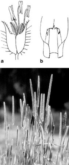 Wiesen-Lieschgras (Phleum pratense),a Ährchen, b Blattgrund mit Blatthäutchen