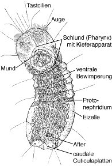 Lit.:Kristensen, R.M., Funch, P.: Micrognathozoa (2000): A New Class With Complicated Jaws Like Those of Rotifera and Gnathostomulida.J. Morphology 246, 1–49. Ahlrichs, W.H.: Ultrastruktur und Phylogenie von Seison nebaliae (Grube 1859) und Seison annulatus (Claus 1876). Göttingen 1995.