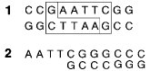 EcoRI-Linker mit Erkennungssequenz und Schnittstelle; 2 Adaptor mit überhängendem klebrigem EcoRI-Ende