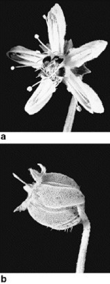Loasaceae, Blumennesselgewächse, Familie der Veilchenartigen mit 15 Gattungen und 250 fast ausschließlich in den Tropen und Subtropen Amerikas beheimateten Arten. Meist mit Borsten oder Brenn- bzw. Hakenhaaren bedeckte Kräuter (seltener Sträucher, Bäume oder Lianen) mit ganzrandigen bis fiederspaltigen Blättern und oft großen, schön gefärbten Blüten. Letztere einzeln stehend oder zu zymösen Blütenständen angeordnet, staminokarpellat, radiär und in der Regel 5zählig mit meist freien, sehr vielgestaltigen Kronblättern. Von den oft zahlreichen Staubblättern sind die inneren häufig zu Nektarschuppen umgewandelt, die ein großes, farbiges Nektarium bilden können. Der meist aus 3–5 verwachsenen Fruchtblättern bestehende Fruchtknoten wird zu einer Kapsel oder Schließfrucht ( vgl. Abb. ), die oft stark ölhaltige Samen enthält. Etliche Vertreter werden ihrer auffälligen Blüten wegen als Zierpflanzen kultiviert. Hierzu gehören Arten der Gattungen Loasa (z.B. Loasa triphylla mit weißen Kronblättern und gelben Nektarien, die rot und weiß gemustert sind) und Eucnide (z.B. die gelbblühende Eucnide bartonioides) sowie verschiedene Arten von Mentzelia, wie etwa die nordamerikanische Mentzelia decapetala mit großen gelblichweißen oder Mentzelia lindleyi mit bis 10 cm großen gelben, wohlriechenden Blüten, die sich nachts öffnen. Die Samen einiger Mentzelia-Arten werden von nordamerikanischen Indianern auch zu Mehl verarbeitet.