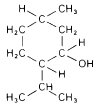 Menthols, Menthan-3-ol, Stearopten, monocyclischer Monoterpenalkohol ( vgl. Abb. ), der den Hauptbestandteil (50–78%) des Pfefferminzöls (etherische Öle, Minze) ausmacht und aus diesem gewonnen wird. Aufgrund seiner anästhesierenden und erfrischenden Wirkung (erzeugt Kältegefühl durch Reizung der kälteempfindlichen Nerven) wird Menthol z.B. äußerlich zur Stillung von Juckreiz, zu Einreibungen, bei Neuralgien und in Schnupfenmitteln verwendet. Menthol ist auch ein wichtiger Bestandteil von Zahn- und Mundpflegemitteln und findet zudem zur Aromatisierung von Likören, Süß- und Tabakwaren Verwendung.