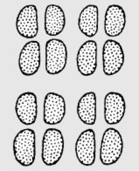 Ausschnitt aus einem Coenobium von Merismopedia punctata; Einzelzelle 2,3–3,5 μm breit
