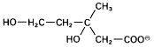Mevalonsäure, Vorstufe des Cholesterins und anderer Isoprenoide, die sich aus 3 Molekülen Acetyl-Coenzym A bildet. Die Weiterreaktion von Mevalonsäure ( ä vgl. Abb. ) zum komplizierten Ringgerüst des Cholesterins vollzieht sich über Squalen als Zwischenstufe in vielen Einzelschritten. Dabei wird Mevalonsäure mittels Phosphorylierungen und Decarboxylierung in 3-Isopentenylpyrophosphat umgewandelt.