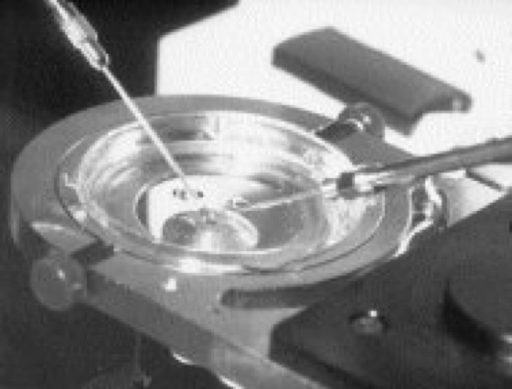 Mikromanipulator bei der intracytoplasmatischen Spermieninjektion (Mikroinsemination)