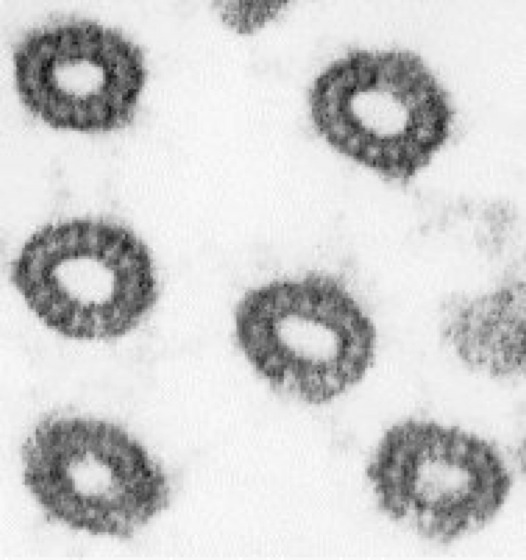 Abb. 1: elektronenmikroskopische Aufnahme von Mikrotubuli im Querschnitt