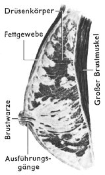 Längsschnitt durch eine weibliche Brustdrüse