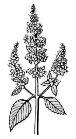 Minzew, Mentha, über die Nordhalbkugel und Australien verbreitete, insbesondere im Mittelmeerraum und Vorderasien heimische Gattung der Lippenblütler mit rund 20, durch häufige Bastardierung zum Teil sehr formenreichen Arten. Ausdauernde, Ausläufer bildende, stark aromatisch duftende Kräuter mit kreuzgegenständigen, breiteiförmigen bis lanzettlichen, am Rande gekerbten bis gesägten Blättern und zahlreichen, in blattachselständigen, oft kopfig oder ährenförmig zusammengedrängten Scheinquirlen stehenden, kleinen Blüten. Blütenkrone meist blaßrötlich bis violett, mit kurzer Röhre und nahezu radiärem, 4spaltigem Saum. Die 4 Staubblätter ragen oft über die Kronröhre hinaus. In Mitteleuropa zu finden sind vor allem die Acker-Minze, Mentha arvensis (in Naßwiesen und den Unkrautfluren feuchter Äcker), die Wasser-Minze, Mentha aquatica (in Röhricht- und Großseggen-Gesellschaften, an Ufern und Gräben, in nassen Wiesen, Wäldern und Gebüschen) sowie die Roß-Minze, Mentha longifolia (in Pioniergesellschaften an Ufern, in Naßwiesen, an Gräben usw.). In Gärten kultiviert wird die aus dem westlichen Mittelmeerraum stammende, gelegentlich auch verwilderte Grüne Minze oder Ähren-Minze (Mentha spicata) sowie die Pfefferminze, Mentha piperita ( vgl. Abb. und Kulturpflanzen VIII ), ein steriler, sich durch Ausläufer vermehrender Bastard zwischen Mentha aquatica und Mentha spicata. Verschiedene Arten der Minze wurden schon im Altertum als Gewürzpflanzen und Heilpflanzen geschätzt ( vgl. Infobox ).