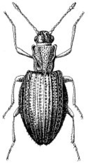 Moderkäfer, 1)Lathridiidae, neuere Schreibweise Latridiidae, Familie der polyphagen Käfer, in Mitteleuropa ca. 65, weltweit über 1100 Arten. Sehr kleine (0,8–3 mm), längliche, oft bräunliche Käfer mit fadenförmigen Fühlern, die eine 3gliedrige Keule aufweisen ( ä vgl. Abb. ). Sie ernähren sich einschließlich ihrer Larven von Mycel und Sporen vor allem Niederer Pilze; deshalb finden sich Moderkäfer an allen erdenklichen Stellen, sofern diese nur Bedingungen für Pilzbefall gewährleisten, z.B. auch in feuchten Wohnungen (Hausfauna), Stallungen und Kellern, neben ihren natürlichen Habitaten im Freiland. Sie sind auch an verschimmelten Vorräten anzutreffen und werden auf diese Weise auch immer wieder eingeschleppt (Einschleppung). So findet man bei uns gelegentlich Arten der Gattung Holoparamecus an Reis oder getrockneten Pilzen. Hefekäfer (Cartodere) leben an schimmeligem Heu, im Mulm von Bäumen, synanthrop (Synanthropie) auch in feuchten Wohnungen (schimmelige Tapeten). Auch Corticaria pubescens tritt gelegentlich massenhaft in Wohnungen auf. ä Käfer I . 2) veraltete Bezeichnung für einige Arten der Kurzflügler, z.B. den Gelbhaarmoderkäfer (Emus hirtus).