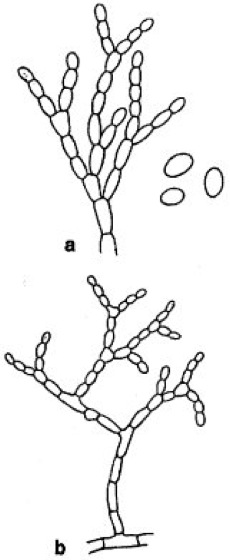 Abb. 1: Verzweigte Konidienketten vom Monilia-Typ.
