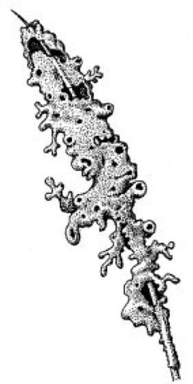 Monoraphisw [von *mono- , griech. raphis = Nadel], Monorhaphis, Gattung der Glasschwamm-Familie Semperellidae. Monoraphis chuni ( vgl. Abb. ), zentrales Skelett aus einer einzigen, glashellen bleistiftdicken und bis 3 m langen Kieselnadel (Pfahlnadel), die bis zu 1/3 im Tiefseeboden steckt; Vorkommen: Somali-Küste in ca. 1500 m Tiefe.
