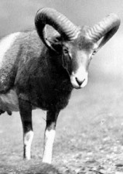 Mufflonm [von kors. mufrone über frz. mouflon = Wildschaf], Muffelwild, Europäisches Wildschaf, Ovis ammon musimon, kleinste und westlichste Unterart des Wildschafs (Kopfrumpflänge 110–130 cm, Schulterhöhe 65–80 cm); Widder mit stattlichem kreisbogenförmigem Gehörn („Schnecke“; vgl. Abb. ), Schafe mit kurzem, leicht rückwärts gebogenem Gehörn oder hornlos; kurzhaariges Fell, Felloberseite braun, -unterseite weiß. Der Mufflon gilt als die Stammform des europäischen Hausschafes (seine Domestikation geschah bereits vor über 10.000 Jahren); noch zu Anfang der Jungsteinzeit reichte sein Verbreitungsgebiet von Ungarn, Mähren und Süddeutschland bis zum Mittelmeerraum. Nacheiszeitlich kamen Mufflons nur noch auf Korsika und Sardinien wild vor; heute nur noch in kleinen Restbeständen. Ihre Reinerbigkeit wird angezweifelt, da Mufflons sich auch mit anderen Unterarten des Wildschafs und auch mit Hausschafen (Schafe) kreuzen. (Neuerdings halten manche Autoren die heutigen Mufflons sogar für verwilderte Hausschafe!). Der Mufflon ist Tag- und Dämmerungstier und lebt in kleinen, gemischten Rudeln unter Führung eines alten Mutterschafs ursprünglich in Bergwäldern. In vielen Mittelgebirgsgegenden des europäischen Festlands wurde der Mufflon als begehrtes Jagdwild (Hochwild), zum Teil nach Kreuzung mit Hausschafen (z.B. dem osteuropäischen Zackelschaf), (wieder) ausgesetzt. – Auf Zypern lebt noch ein geringer Restbestand des Zyprischen Mufflons (Ovis ammon ophion) in unterholzreichen Mittelgebirgswäldern.