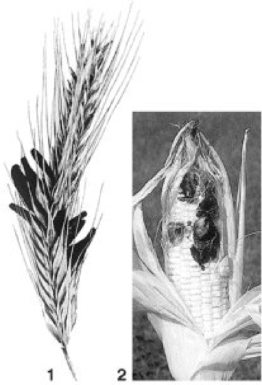 Mutterkorn an Roggen, 2 vom Schlauchpilz Claviceps befallener Maiskolben