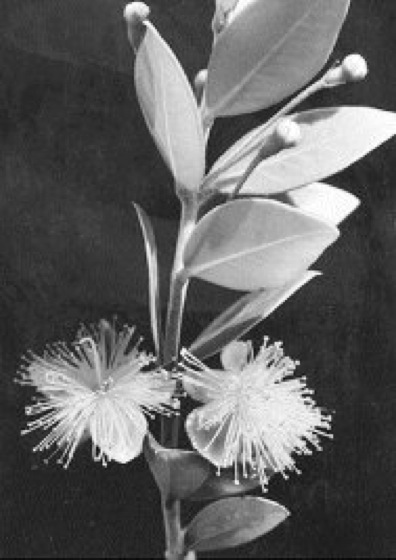 Myrtew [von *myrt- ], Myrtus, Gattung der Myrtengewächse mit 2 im Mittelmeergebiet heimischen Arten; immergrüne Sträucher mit aromatisch duftenden Blättern (Myrtenöl), blattachselständigen, 4–5zähligen Blüten mit einer Vielzahl von Staubgefäßen und Beerenfrüchten. Die zum Hartlaubgebüsch der Macchie gehörende, bis 5 m hohe Braut-Myrte (Myrtus communis;vgl. Abb. und Mediterranregion I ) ist ein dunkelgrüner Strauch mit kleinen, lanzettlichen Blättern, weißen, duftenden Blüten und erbsengroßen, dunklen Beeren. Sie wird in vielen Sorten als Zierstrauch kultiviert und kann auch wegen ihres dichten Wuchses in Form geschnitten werden. Die Zwerg-Myrte (Myrtus communis 'Microphylla') läßt sich als Zimmerpflanze ziehen. Die einst zur Gattung gehörenden, auf der Südhalbkugel beheimateten Myrten werden heute mehreren neuen Gattungen zugeordnet (Luma, Lophomyrtus, Amomyrtus usw.).