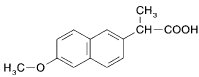Naproxens, α-Arylpropionsäure ( vgl. Abb. ), wird als nichtsteroidales Antirheumatikum, Antiphlogistikum, schwach bis mittelstarkes Analgetikum und Antipyretikum eingesetzt; Halbwertszeit ca. 12 h. Arylpropionsäure-Derivate.