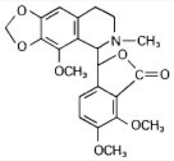 Narcotins [von griech. narkōtikos = betäubend], Noscapin, eines der zahlreichen natürlichen Alkaloide des Opiums (Mohn, Opiumalkaloide); dort zu ca. 6% in der Trockenmasse enthalten. Narcotin ( vgl. Abb. ) ist ein Benzylisochinolinalkaloid und chemisch mit Papaverin verwandt. Es wird als Antitussivum therapeutisch eingesetzt und besitzt keine analgetische, atemdepressive oder obstipierende Wirkung, verstärkt jedoch die Wirkung von Morphin, weshalb es gelegentlich mit diesem kombiniert wird. Robinson (R.).
