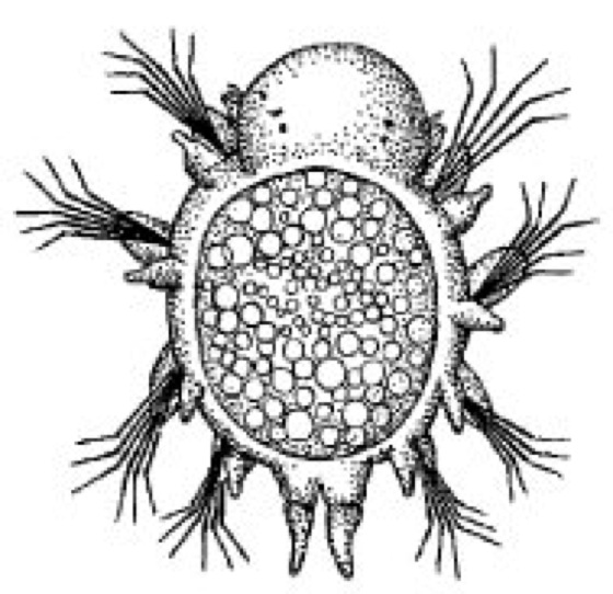 Nectochaetaw [von *necto- , griech. chaitē = Haar, Borste], langgestreckte Metatrochophora-Larve (Metatrochophora) bei Polychaeten(Polynoidae, Phyllodocidae, Nereidae, Eunicidae) mit wenigstens 3 Paar Borstenbündeln ( vgl. Abb. ), die den Sinkwiderstand erhöhen, und Parapodien, die zum Schwimmen mitbenutzt werden, auch wenn die Lokomotion im wesentlichen noch durch den Prototroch erfolgt.