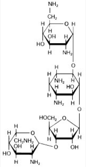 Neomycine [von *neo- , griech. mykēs = Pilz], Aminoglykosid-Antibiotika, produziert von Streptomyces fradiae, Streptomyces albogriseolis, Streptomyces flavoalbus und teilweise nicht identifizierten Streptomyceten (Streptomycetaceae). Das wichtigste Neomycin ist das Neomycin B (Framycetin; vgl. Abb. ), das 8590% der Neomycine ausmacht. Weitere Bestandteile sind Neomycin A (Neamin) und Neomycin C. Die Streptothricine BII und BI sind Abbauprodukte von Neomycin B bzw. C. Neomycine sind aus Aminozuckern aufgebaute und daher basisch reagierende Tetrasaccharide, die durch Anlagerung an die kleine Untereinheit der prokaryotischen Ribosomen die bakterielle Proteinbiosynthese hemmen. Neomycine besitzen ein breites Wirkspektrum. Sie wirken vor allem auf gramnegative (Gram-Färbung) Bakterien (auch Salmonella, Shigella), Proteus, Escherichia coli sowie auf manche Staphylokokken (Staphylococcus) und Diphtheriebakterien. Streptokokken und Enterokokken (Streptococcus) hingegen sind gegen Neomycine resistent (Antibiotika-Resistenz). Resistente Keime besitzen Enzyme, mit denen sie die Neomycine acetylieren (Acetylierung) oder phosphorylieren (Phosphorylierung) können. Die so modifizierten Neomycine binden nicht mehr an die Ribosomen und sind daher nicht mehr in der Lage, die Proteinsynthese der Keime zu unterbinden. Aufgrund ihrer Ototoxizität und Nephrotoxizität (toxisch auf die Niere wirkend) dürfen Neomycine nicht parenteral appliziert werden. Als weitere Nebenwirkungen können Allergien auftreten. Neomycine werden nicht resorbiert; sie werden deshalb lokal als Salben und Puder (bei Augen-, Ohren-, Haut- und Schleimhautinfektionen) sowie oral als Lutschtabletten appliziert. Die Hälfte der Weltproduktion an Neomycinen findet in der Veterinärmedizin Verwendung. Antibiotika (Tab.), Neomycin-Phosphotransferase, Neomycin-Resistenz.
