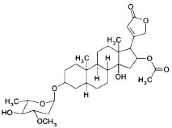 Oleandrins, im Milchsaft des Oleanders enthaltenes stark giftiges Herzglykosid mit Digitaliswirkung (Digitalisglykoside); Glykosid aus Acetyl-Gitoxigenin und dem Zucker Oleandrose ( vgl. Abb. ).