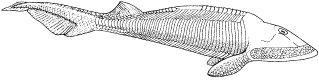 Osteostraci [von *osteo- , griech. ostrakon = Schale], (Lankester 1868), Ordnung der ausgestorbenen Cephalaspiden. Der dorsoventral abgeflachte Kopf und vordere Rumpf sind von einem Knochenpanzer umgeben; der hintere Teil des Körpers ist von sich überlappenden Schuppen bedeckt. Auf der Oberseite des Kopfpanzers befinden sich mittig die eng stehenden Augen, das unpaare, nicht mit der Rachenhöhle in Verbindung stehende Nasohypophysenloch und die Pinealöffnung. Randlich am Kopf sind Sinnesorganfelder unbekannter Funktion angeordnet. Auf der Kopfunterseite liegen randlich des von Haut überdeckten Orobranchialfensters etwa 10 paarige Kiemenöffnungen und zentral vorne die Mundöffnung. Das fossil als Gesteinsausguß erhaltene Gehirn einiger Osteostracen wurde von dem schwedischen Zoologen und Paläontologen E.A. Stensiö genau untersucht. Es ähnelt dem der rezenten Rundmäuler. Brustflossen paarig, Bauchflossen nicht vorhanden, Schwanzflosse heterozerk. Die Osteostracen ( vgl. Abb. ) waren im Süßwasser und marin bodenbezogen lebende, wahrscheinlich von Mikroorganismen sich ernährende Tiere von bis zu etwa 50 cm Länge. Sie kommen vom oberen Silur bis zum mittleren Devon in Europa, dem Baltikum, Spitzbergen, Grönland, Nordasien und Nordamerika vor. Bekannteste Gattung: Kiaeraspis. Myopterygii.