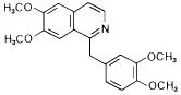 Papaverins [von *papaver- ], ein im Opium zu 0,8–1,5% enthaltenes Isochinolin-Alkaloid (Opiumalkaloide), das erstmals 1848 von Merck isoliert wurde. Papaverin ( vgl. Abb. ) wirkt lähmend auf die glatte Muskulatur des Magens, Darms und der Galle und besitzt im Gegensatz zu Morphin keine zentralanalgetische und süchtigmachenden Eigenschaften. Aufgrund seiner spasmolytischen Wirkung wird Papaverin (heute weitgehend synthetisch gewonnen) in Kombination mit Analgetika, Herz-Kreislauf-Präparaten und Asthmamitteln (Antasthmatika) verwendet. Ein ebenfalls natürlich im Opium vorkommendes Derivat des Papaverins ist das Laudanosin. Pictet (A.), Robinson (R.).