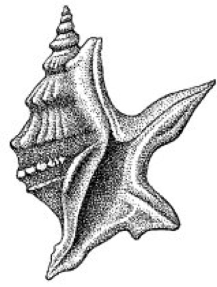 Pelikansfuß, Aporrhais pespelecani, Flügelschnecke der Familie Aporrhaidae (Pelikansfüße) mit dickem, turmförmigem Gehäuse (bis 5 cm hoch); der Mündungsrand der Adulten ist zu 4 fingerartigen Fortsätzen ausgezogen ( ß vgl. Abb. ). Bandzüngler, die sich in sandig-schlammigem Meeresboden eingraben und sich als Strudler von Detritus und Mikroorganismen ernähren; Nordatlantik bis Mittelmeer.