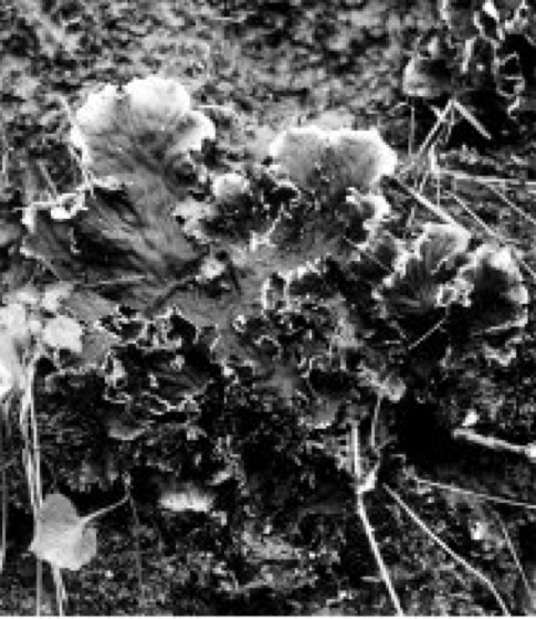 Peltigeraw [von *pelt- , latein. -ger = -tragend], Schildflechte, Gattung der Peltigeraceae mit etwa 70, in Mitteleuropa ca. 22 Arten, großblättrige, teils über 40 cm im Durchmesser erreichende, graue bis braune Laubflechten ( vgl. Abb. ), deren Apothecien sich an den Thallusrändern entwickeln; hauptsächlich in kalten und gemäßigten Gebieten, auf Erde, Humus, Moosen, bemooster Rinde wachsend. Mit Cyanobakterien (Nostoc) oder Grünalgen (Coccomyxa), die Grünalgenflechten zusätzlich mit Nostoc in Cephalodien. In feuchtem Zustand sind die Lager je nach Photobiont hellgrün (so Peltigera aphthosa und Peltigera leucophlebia, Apfelflechte) oder dunkel blaugrün bis schwärzlich (z.B. die Hundsflechten Peltigera canina und Peltigera praetextata, die häufigste Peltigera-Art in Mitteleuropa). Flechten III .