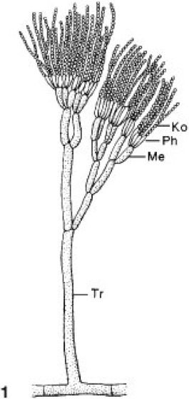 1 Konidienträger (Ko Konidien, Me Metulae, Ph Phialiden, Tr Traghyphe)