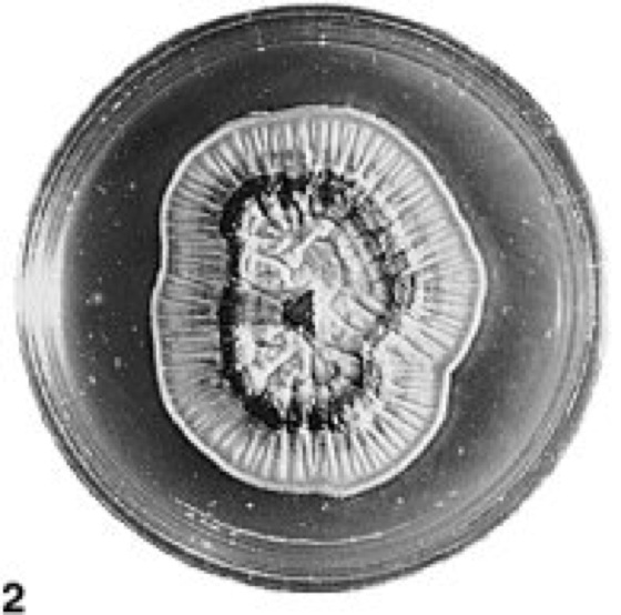 2 der auf Glucose-Agar gezüchtete Schimmelpilz Penicillium notatum als Ausgangsmaterial für die Herstellung des Antibiotikums Penicillin