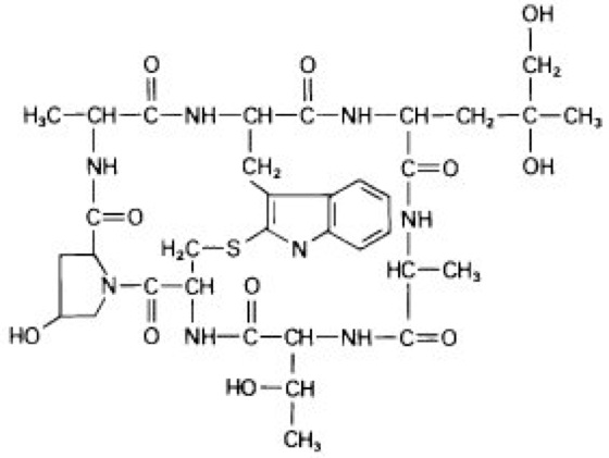 Phallotoxine [von *phallo- , griech. toxikon = Gift], zusammen mit den Amatoxinen in verschiedenen Knollenblätterpilzen (z.B. Amanita phalloides) vorkommende giftige bicyclische Heptapeptide (Pilzgifte). Ihre cytotoxische Wirkung beruht auf einem Angriff an den intrazellulären Mikrofilamenten. Hauptvertreter der Phallotoxine ist das Phalloidin (ca. 10 mg pro 100 g frischem Knollenblätterpilz), weitere Phallotoxine sind Phalloin, Phallacidin, Phallisin und Phallin. Phalloidin ( vgl. Abb. ) bindet nur an die polymere Form des Actins (F-Actin). Es läßt sich an fluoreszente (Fluoreszenz) Farbstoffe koppeln und spielt daher in der Zellforschung eine wichtige Rolle für die Beobachtung der Actin-Mikrofilamente (Actinfilament). Wieland (H.T.F.).