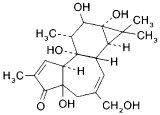 Phorbols [von Euphorbia = Wolfsmilch], Diterpenalkohol ( vgl. Abb. ), der in Form seiner Diester in vielen Wolfsmilchgewächsen und Seidelbastgewächsen vorkommt (Crotonöl). Verschiedene Ester des Phorbols (Phorbolester) besitzen eine cocarcinogene Wirkung. Tumorpromotoren.
