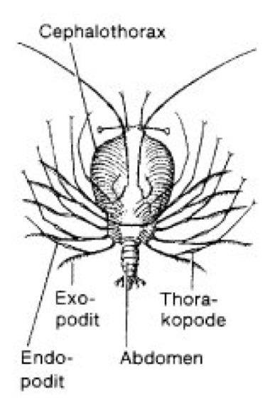 Phyllosomas [von *phyllo- , griech. sōma = Körper], Phyllosomalarve, Blattkrebs, Larve der Palinura (Bärenkrebse und Langusten); entspricht etwa einer Zoea, unterscheidet sich von dieser aber durch den breiten, flachen Carapax und andere Anpassungen an die pelagische Lebensweise ( vgl. Abb. ).