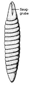 Plerocercoidm [von Plerocercus, griech. -oeidēs = -ähnlich], Sparganum, 3. Larvenstadium der Pseudophyllidea (Bandwürmer) im 2. Zwischenwirt, geht aus einem Procercoid hervor; durch einen Skolex mit 2 Sauggruben ( vgl. Abb. ) und beginnende Strobilation gekennzeichnet.