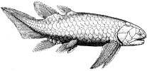 Holoptychius wurde bis ca. 75 cm lang; er besaß paarige Flossen, die an die der Lungenfische erinnern.