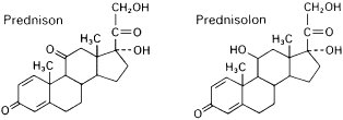 Die synthetischen Glucocorticoide Prednison (Cortisonderivat) und Prednisolon (Cortisolderivat)