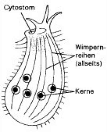 Protociliata [von *proto- , latein. cilium = Wimper], allseits bewimperte Einzeller, die lange für ursprüngliche Wimpertierchen gehalten wurden. Sie haben jedoch keinen Kerndualismus, und es fehlt die charakteristische Oberflächenstruktur (z.B. Alveolen). Sie sind mehrkernig, alle Kerne sind gleich, besitzen einen zentralen Nucleolus und teilen sich mitotisch; sexuelle Fortpflanzung ist unbekannt. Einzige Gattung (3 Arten) ist Stephanopogon ( vgl. Abb. ); lebt im Mesopsammal der Meere. Aufgrund der Ergebnisse von Feinstrukturuntersuchungen des Cortex wird die Gattung heute in der Gruppe Pseudociliata zu den Euglenozoa gestellt.