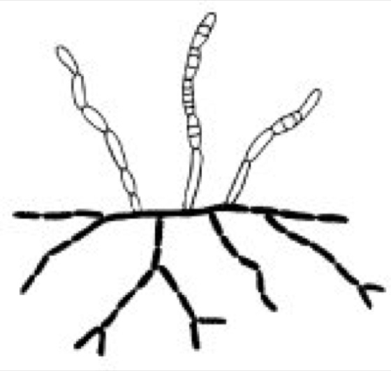 Substratmycel (dunkel) und (hell) Luftmycel (zum Teil in Sporen umgewandelt)
