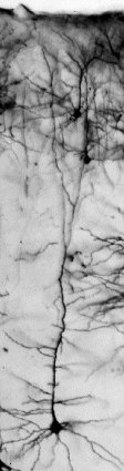 mittels Golgi-Färbung dargestellte Pyramidenzelle im Neocortex der Maus