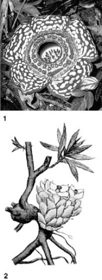 1 Blüte einer Rafflesie (Rafflesia pricei),2Cytinus hypocistis