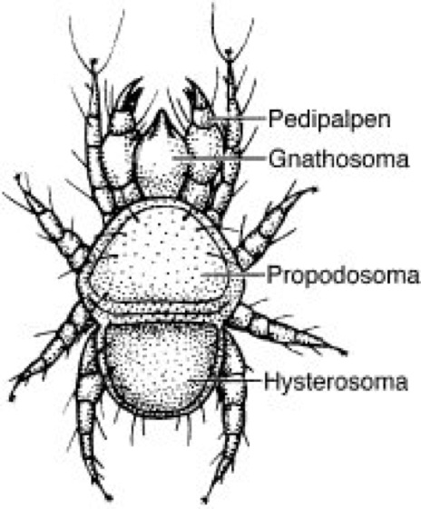 Dorsalansicht der freilebenden Raubmilbe Cheyletus eruditus