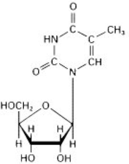 Ribothymidins, in transfer-RNA enthaltenes Nucleosid mit modifizierter Base ( vgl. Abb. ).