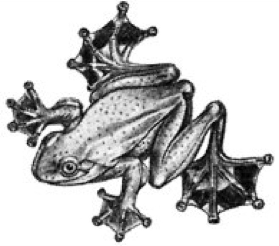 Ruderfrösche, Rhacophoridae, Familie der Froschlurche, die mit den Ranidae undHyperoliidae die Überfamilie Ranoidea bildet und von manchen Autoren auch als Unterfamilie (Rhacophorinae) der Ranidae, von anderen als Unterfamilie der Hyperoliidae aufgefaßt wird. Auch ihr Umfang wird sehr unterschiedlich bewertet; manche zählen die Goldfröschchen zu den Ruderfröschen, andere die Hyperoliidae. Schließlich werden viele der afrikanischen Gattungen der Hyperoliidae häufig auch zu den Ruderfröschen gezählt. Hier werden die Ruderfrösche i.e.S. behandelt ( ö vgl. Tab. ). Dazu gehören neben der afrikanischen Gattung Chiromantis die südostasiatischen Gattungen Rhacophorus und Philautus. Die Ruderfrösche bilden in Afrika und Südostasien ähnliche Nischen wie die Laubfrösche in Südamerika. Wie diese besitzen sie ein zusätzliches Finger- und Zehenglied – ihr wichtigstes Unterscheidungsmerkmal zu den Ranidae. Sie sind Baumbewohner mit verbreiterten Zehen- und Fingerscheiben. Die ca. 60 Arten der Gattung Philautus (bis 40 cm) und etwa 80 Arten von Rhacophorus (bis 10 cm) in Südostasien sind typische Baumfrösche und meist Regenwaldbewohner, nur der braune Rhacophorus leucomystax ist ein Kulturfolger, der auch in Dörfer und Häuser kommt. Manche Arten sind prächtig bunt gefärbt, so der leuchtend grüne Rhacophorus nigropalmatus mit weißen Flecken und schwarzen Spannhäuten zwischen Fingern und Zehen oder der Java-Flugfrosch (Rhacophorus reinwardtii; ö vgl. Abb. ), ebenfalls grün mit schwarzen oder blauen Spannhäuten (Flughaut [Abb.]). Bei dieser und einigen anderen Arten sind Finger und Zehen vollständig bespannt; die Spannhäute können nach dem Absprung ausgebreitet und so zum Gleitfliegen eingesetzt werden. Außerdem werden die farbigen Füße auch zum Winken eingesetzt: manche Ruderfrösche rufen nicht nur, sondern balzen auch mit winkenden Bewegungen ihrer großen, bunten Füße. Fast alle Ruderfrösche laichen außerhalb des Wassers, indem sie an Zweigen oder zwischen Blättern große Schaumnester anfertigen. Bei Chiromantis können sich mehr als ein Männchen an der Herstellung eines Schaumnestes beteiligen. Während die äußere Wand des Schaumnestes erhärtet, schlüpfen die Larven, bis nach heftigen Regenfällen oder durch Sekrete der Larven das Schaumnest sich verflüssigt und die Larven ins Wasser fallen. Bei einigen Arten bleiben die Larven auch bis zur Metamorphose im Nest. Andere Vertreter, so Rhacophorus microtympanum in Sri Lanka, legen wenige dotterreiche Eier an Baumrinde ab. Das Weibchen bewacht diese, bis fertig entwickelte Jungfrösche schlüpfen. Der bunte Rhacophorus nigropalmatus wird in einigen Gegenden Malaysias religiös verehrt. – Die früher zu den Ruderfröschen gerechnete Gattung Afrixalus (Bananenfrösche) wird neuerdings zu den Hyperoliidae gestellt. Mantellidae.