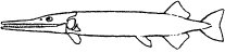 Saurichthysm [von *saur- , griech. ichthys = Fisch], (Agassiz 1834), Gattung ausgestorbener, in der Trias fast weltweit verbreiteter, räuberischer Knorpelganoidfische (Chondrostei; Ordnung Saurichthyiformes) mit einem vorn in ein spitzes Rostrum auslaufenden Schädel ( vgl. Abb. ), das durch die langen, dicht bezahnten Kiefer gebildet wird und an das Rostrum der Ichthyosaurier erinnert. Bis 2 m lang, lebendgebärend (Ovoviviparie). Vorkommen in Gesamteuropa, Spitzbergen, Grönland, Kanada, Nordamerika, Zentral- und Ostasien, China, Indien, Australien, Madagaskar, Nord- und Südafrika.