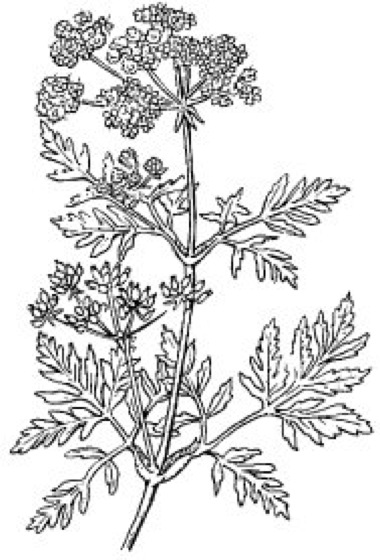 Schierlingm [von althochdeutsch scerning (verwandt mit mittelniederdeutsch scharn = Mist)], Conium, Gattung der Doldenblütler mit 2 Arten. Der 2jährige, bis 2 m hohe Gefleckte Schierling (Conium maculatum; Europa, Asien, Nordafrika; vgl. Abb. ) besitzt 2–3fach fiederteilige, unterseits graugrüne Blätter, weiße Blütendolden und rundliche Früchte; typisch sind der starke Mäusegeruch und der kahle, unten rotfleckige Stengel. Die Pflanze wächst auf nährstoffreichen Böden in Unkrautfluren, z.B. Schuttplätzen, feuchten Gräben und an Wegrändern. Wegen der in ihr enthaltenen Coniumalkaloide (vor allem Coniin) ist sie äußerst giftig (Alkaloide, Giftpflanzen). Der Wasserschierling bildet eine eigene Gattung (Cicuta).